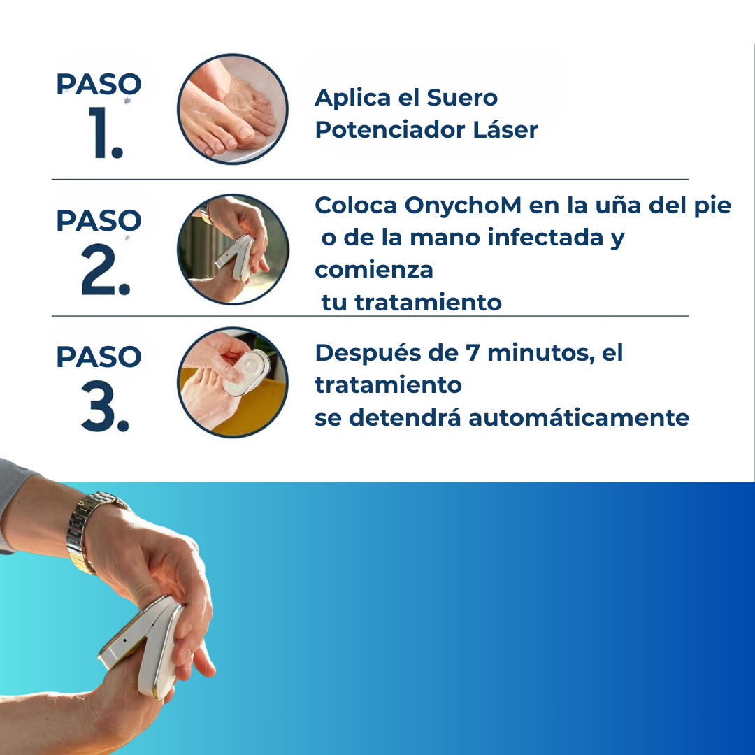 Se recomienda usar MycurePro® una vez al día durante unos 7 minutos por uña. Si lo prefiere, también puede usarlo hasta 2 o 3 veces al día como parte de su rutina de cuidado personal.